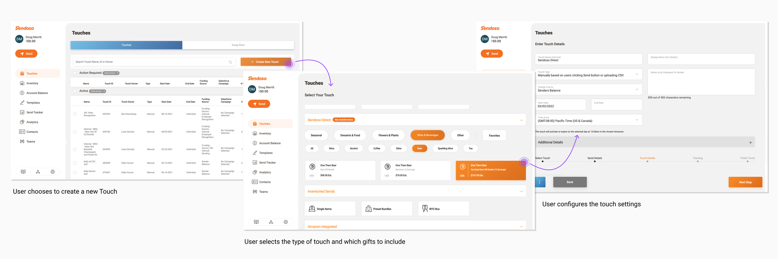 With Marketplace up and running, we needed to explore how we might enable more streamlined gift selection plus build a new settings flow for configuring their campaign. In addition to tackling these needs, however, we needed to solve for a pivot from “Touches” to “Campaigns.” The Touch name never resonated well with our customers, but there were some hurdles beyond just terminology.